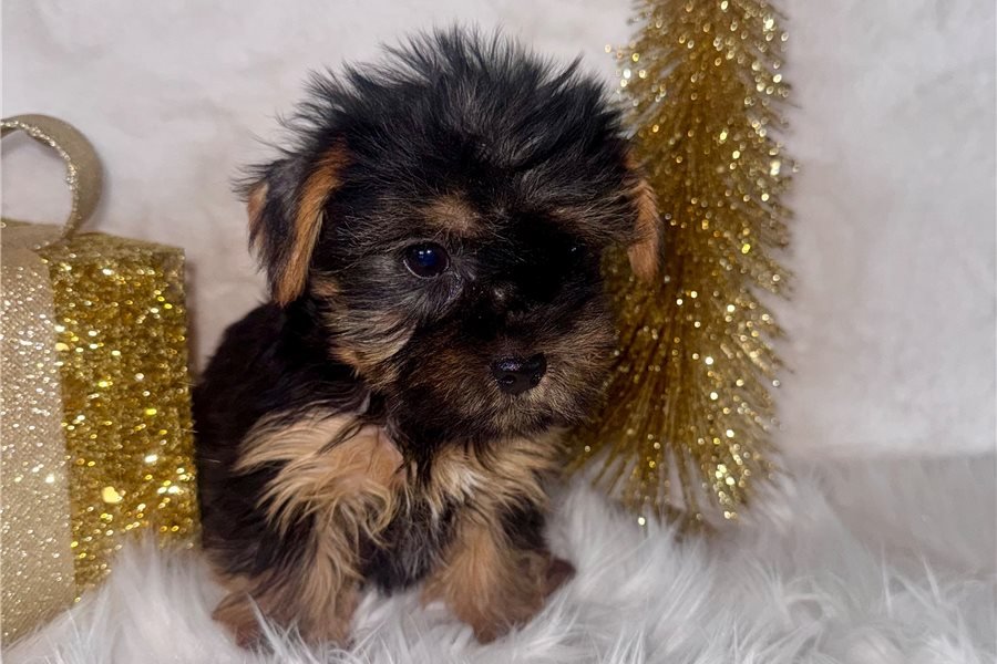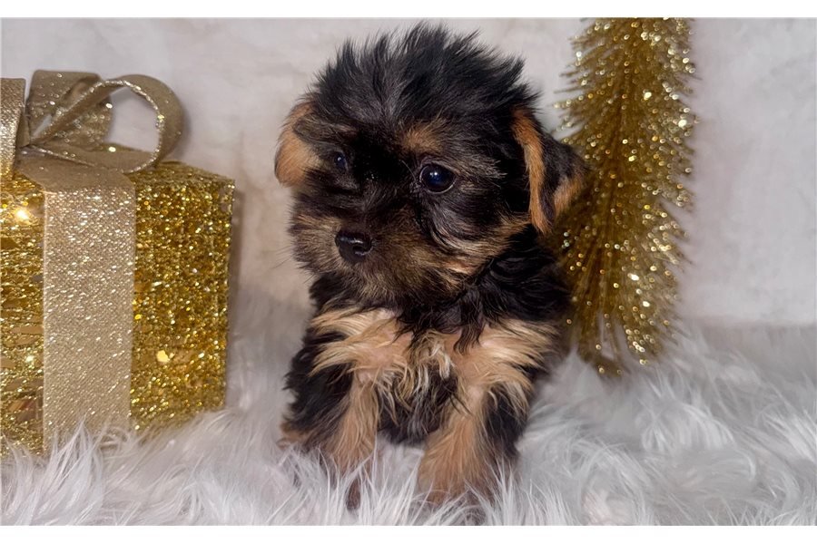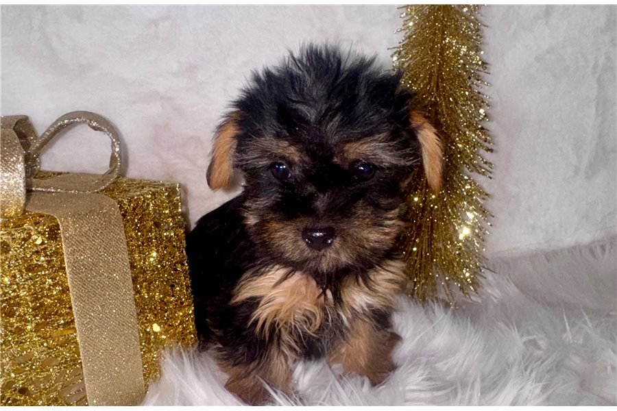 Greetings! I’m Vanessa the Yorkshire Terrier puppy, and I can’t wait to meet you! You’ll love snuggle sessions with my beautiful, soft coat. I have a fun, outgoing personality you’ll love showing off to your friends and neighbors. I’ll enjoy going on walks and learning new games with you! I come with a microchip, APRI registration papers, my tail docked, and my dew claws removed. I’m the loyal companion you’ve dreamed about and will always be by your side. Make me yours today!